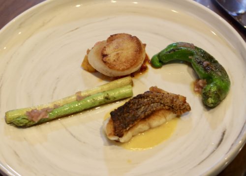 こちらは、コウコ鯛とホタテ貝のポワレ。シェフ自ら市場に足を運び、厳選された魚を使用しています。魚がこんなに上品で、美味しいお料理になることに感動。素材を十分に生かしたお料理が頂けるのは嬉しいですよね。