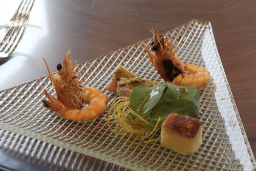 天使海老を使った菜園仕立て。お野菜は地元、山鹿で採れたものです。エビは、ぷりっぷりっでもうこれだけで、大満足。こんな贅沢していいものか、不安になってきましたが、せっかくなので贅沢を楽しんでいきます。