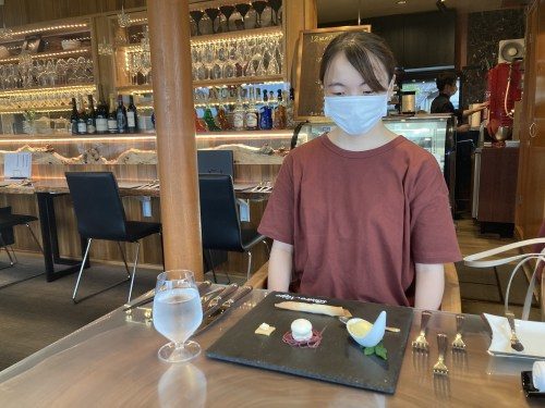 小菓子が出てきました。そして、コーヒー、紅茶、エスプレッソの中から紅茶をセレクト。このお洒落な小菓子までシェフ手作りって凄すぎる。どの小菓子も一流パティシエの味。ここまで手作りで、こだわっているコース料理他にあるんでしょうか!!なめこは、感動が止まりませんでした。