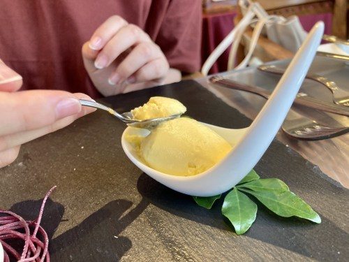 とうもろこしのムース。なめらかな食感、クリーミーで癖になる味です。