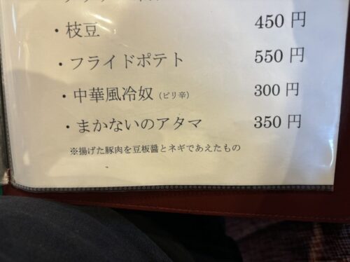 ちなみにアタマとは、ご飯が無い言わばおかずのみという意で、しっかりメニューにも載ってました。