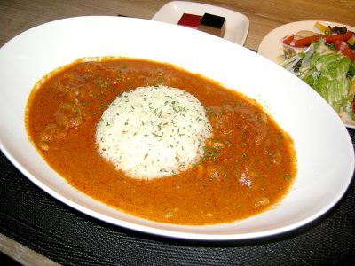 トマトをふんだんに取り入れた旨味たっぷりな味わい。カレーとしての濃厚さは失わず、それでいて口から喉に流れるかのような特別なサラサラカレーと言えそうです。こんなカレーは熊本では珍しいタイプかも。