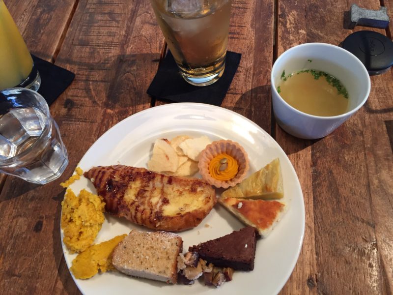 野菜コンソメスープも優しい味で美味しいですがカボチャプリンやスィートポテト、チーズケーキも美味しい。