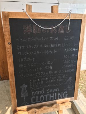 ちなみに、本業である洋服の補正は、デニム・カジュアルパンツの丈つめや、スカートの裾カットなど、630円~可能です。