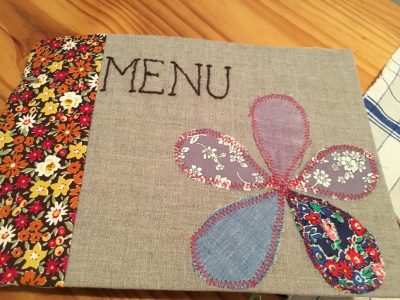 お花のパッチワークが施されたメニュー。