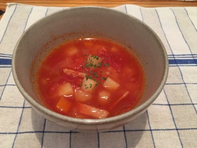 こちらの野菜たっぷりのトマトスープまでついて980円はお得!