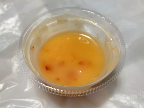 さらにお弁当には“ぼくのソース”という唐揚げソースも付いています。気になったので追いソース(追加)してみました。