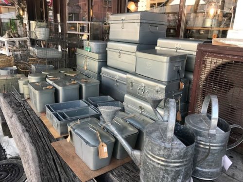 元印刷工場跡地とは思えないおしゃれな佇まい、通りにはみ出そうなほど溢れる雑貨達にワクワク。