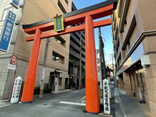 3号線(電車通り)から赤い鳥居をくぐり神社に向かって歩きます。神社に突き当たる右手前に工事中のお店が!