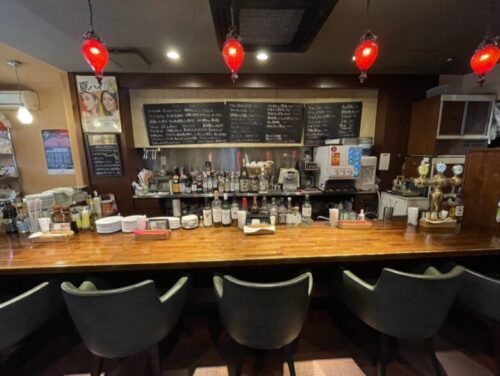 お店に入るとすぐに出迎えてくれるのが、バーカウンター。仕事帰りにふらっと寄ってチョチョっとのんで帰りたい雰囲気。