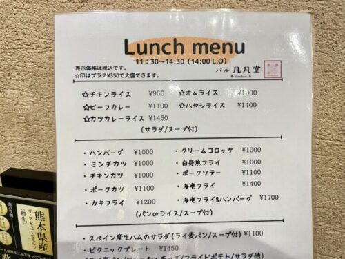 こちらがランチメニュー
