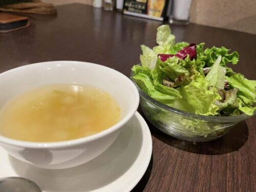 まず出てきたのはスープ&サラダ。
