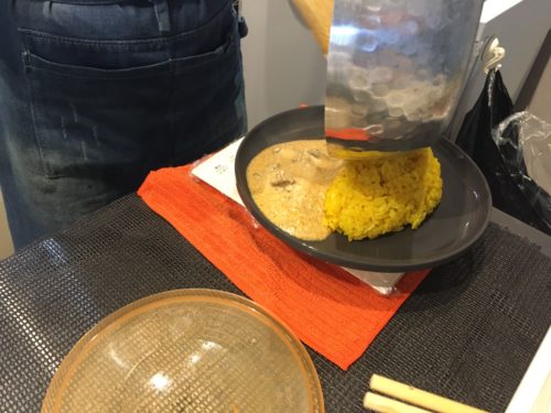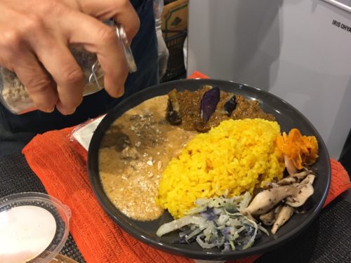 ライスは、スパイス3種を油で炒め、香りづけをしたところにお米を入れ、ターメリックと塩を加えてさらに炒め、それを炊飯器で炊いたという、手間暇かけて作られたおいしいご飯です。