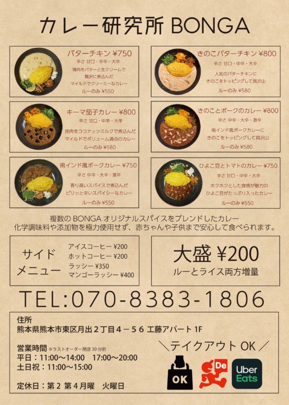 間違いない美味しさ!「カレー研究所BONGA」が11月14日 月出にオープン!