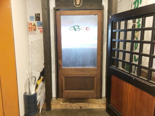エレベーターを降りてすぐ目につく、このレトロな扉が「Boo」の入り口です。