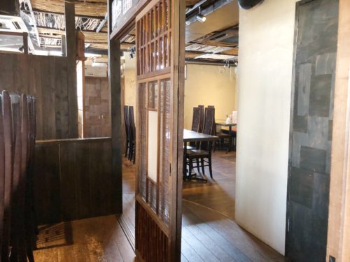 店内はカウンター席とテーブル席に分かれていて、古い木を生かしたおしゃれ雰囲気です。