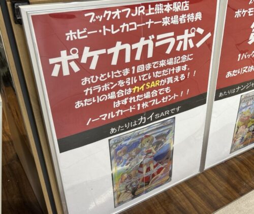 さらに、なんとお店に来た人であれば1人1回ガラポンが回せるそうです。こちらはポケモンカードが必ずもらえるので、ポケカユーザーは大歓喜ですね!