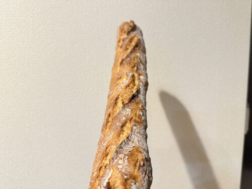 このフランスパン、なんと水道水でジャブジャブ流してから切って焼いて食べると中はしっとり、外はカリッとした感じに戻るそう。