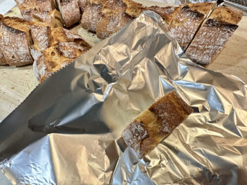 ジップロックなどに入れ、冷凍し食べる分だけとりわけて、アルミホイルごとトースターで焼くと焼き立てに近い味わいになるそう。