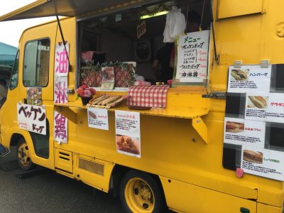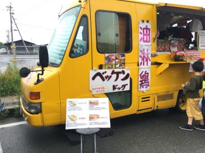 こちらのひまわりのような黄色の大きな移動販売車が目印。ドイツパンで作るホットドッグ・ベッケンドッグと、揚げたての油淋鶏を販売しています。
