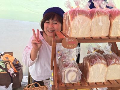 こちらがパンを販売されている竹下さん。まぶしい笑顔と優しさが魅力の癒し系。この日はパンのみでしたが、雑貨や小物も一緒に販売されたりもしているそうです。