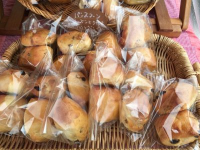 レーズンとクルミのスコーン、クランベリーとチョコのスコーンと、かわいらしいパンが並びます。