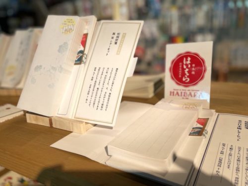 和紙の榛原は日本橋で200年以上続く和紙舗で、こちらの商品を熊本で見れるのはここだけだと思いますとの事。美しいレターセットが豊富で、遠くに住む友人を想います。