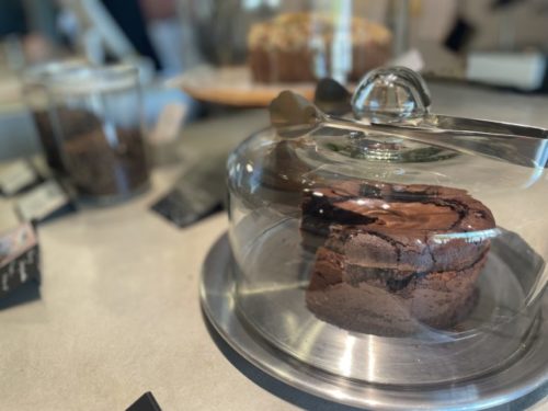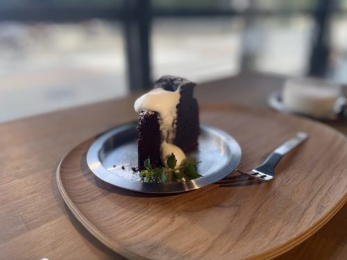 チョコレートケーキはしっとりと。まるで夏の夕立のあとの空気のような内側。