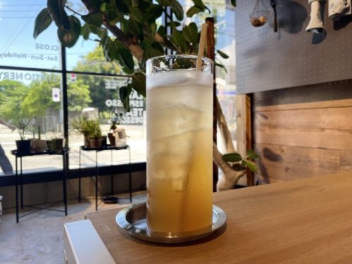 シナモン、クローブ、カルダモン、レモンなどを材料にされています。くるくるっと混ぜてから飲むと、夏にスッと溶ける美味しさです。