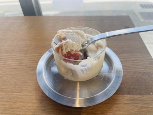 まるごと入ったさくらんぼとシャリシャリがたまらない。ホットコーヒーと是非。