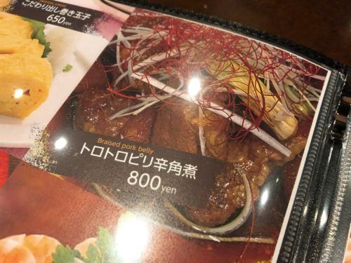 他のおすすめの「トロトロピリ辛角煮」。こちらもお店で一晩タレに漬け込んだりとこだわりの仕込み!