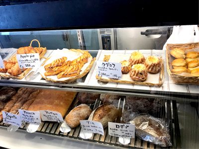 帰りにレジでお会計を済ませようとしたところ、「クグロフ」や「アップルパイ」などの自家製パンがショーケースの中においしそうに並んでいるのを発見!