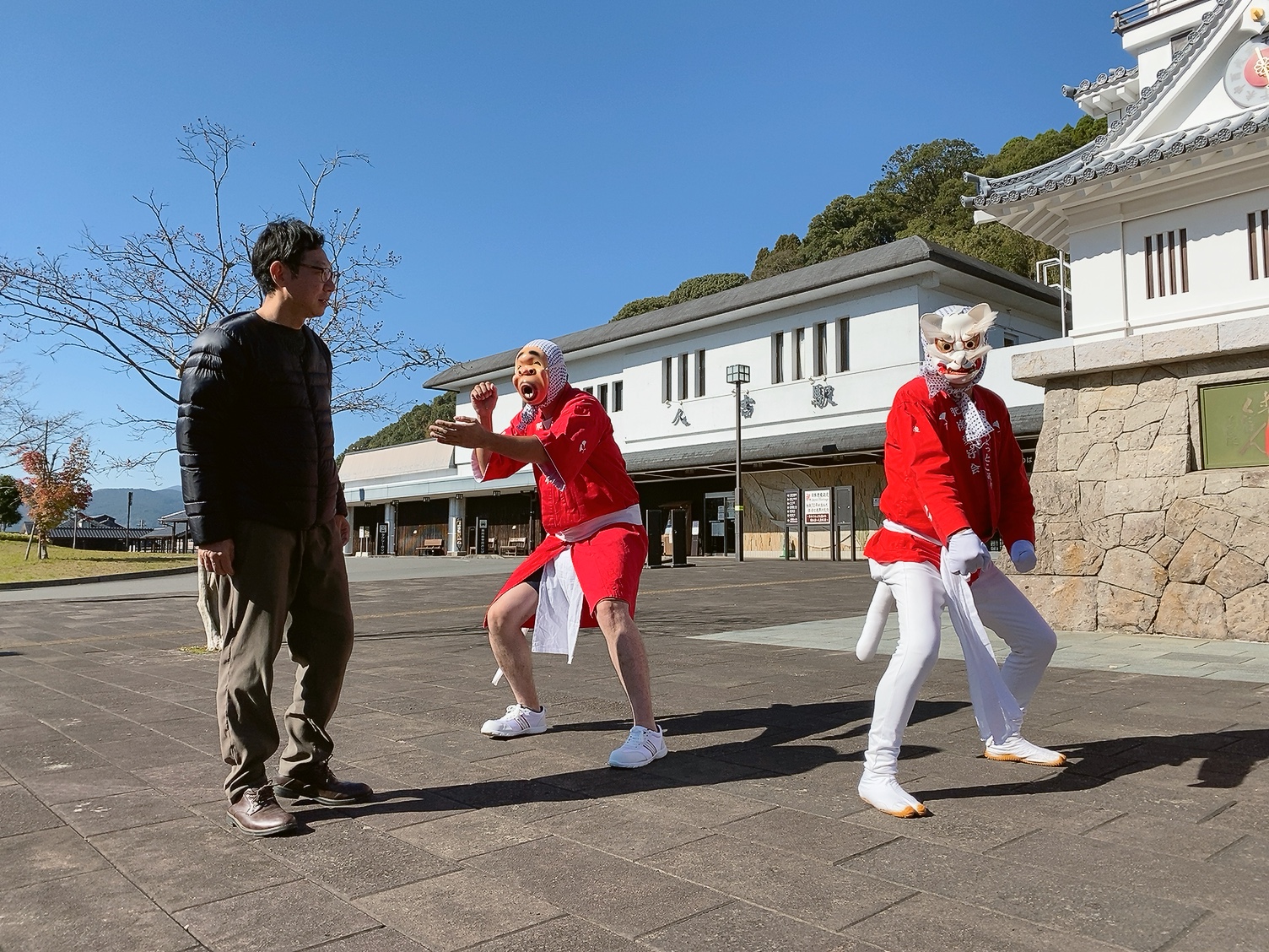 「さすがに踊りながらは厳しい距離ですって!人吉球磨、案外広いんですから!なんで地元なのに距離感バグってんの!そうだ!我々車できているので車で行きましょ!」