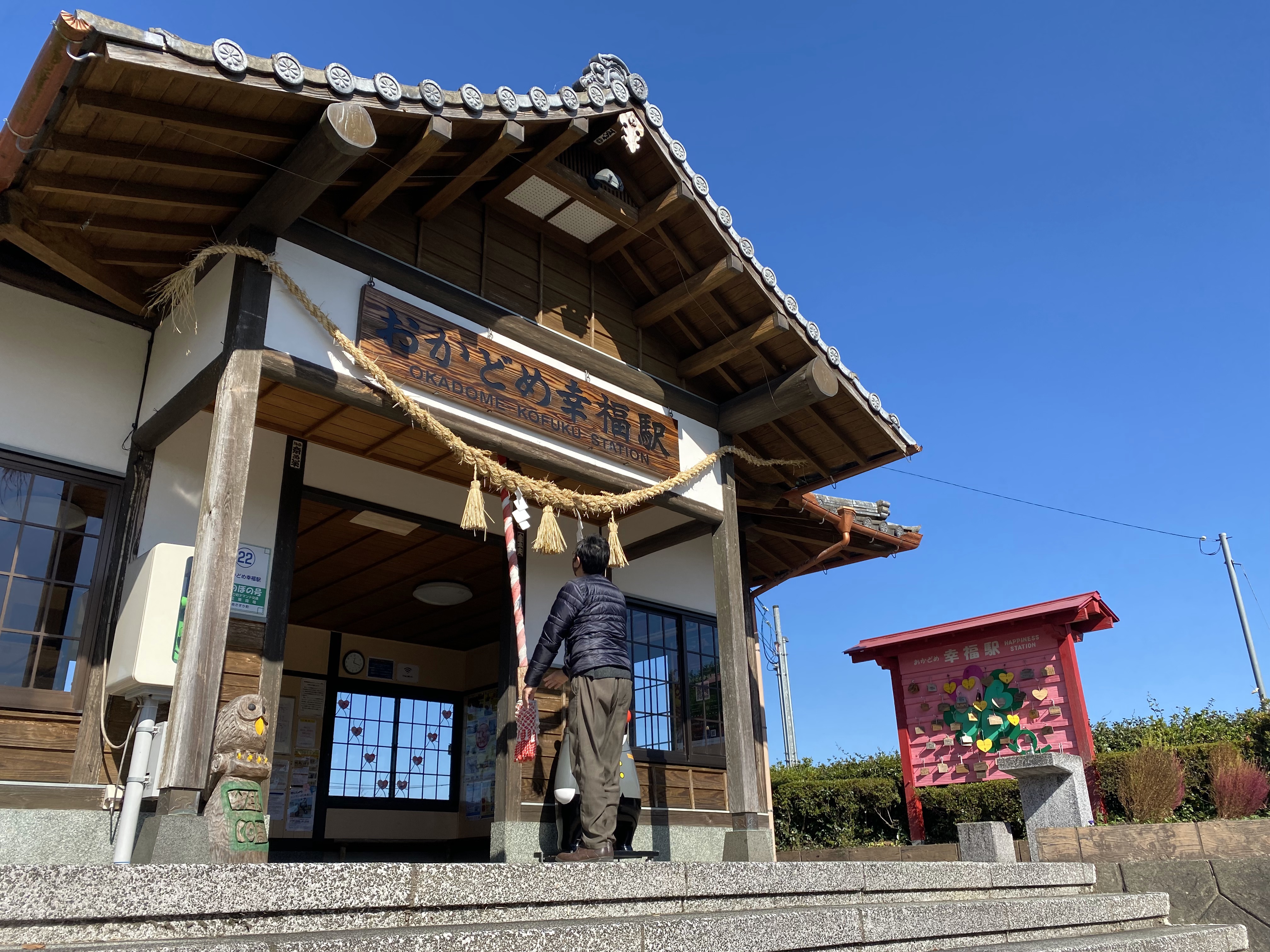 次は、おかどめ幸福駅。日本で唯一「幸福」とついている駅としても有名です。