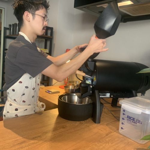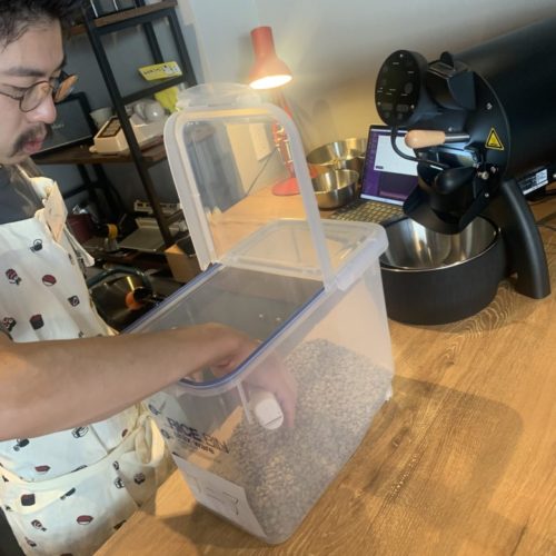 焙煎は数日に1回程、主にお店が閉まっている時間に焙煎されているそうなのですが今回は特別にその様子を見させていただきました。