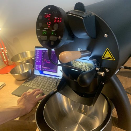 焙煎がスタートしましたが、この機械、パソコンに繋がっている…!