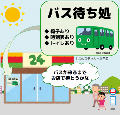 そこで熊本市が整備した制度が「バス待ち処」。バス停に隣接したスーパーやコンビニの協力で、イートインスペースなどを活用した待合所やトイレの提供、時刻表の掲示や配布されます。