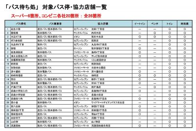 熊本市がバスの待合環境を改善するため、スーパーやコンビニなどの商業施設と連携し「バス待ち処」を26カ所設置したそうです。