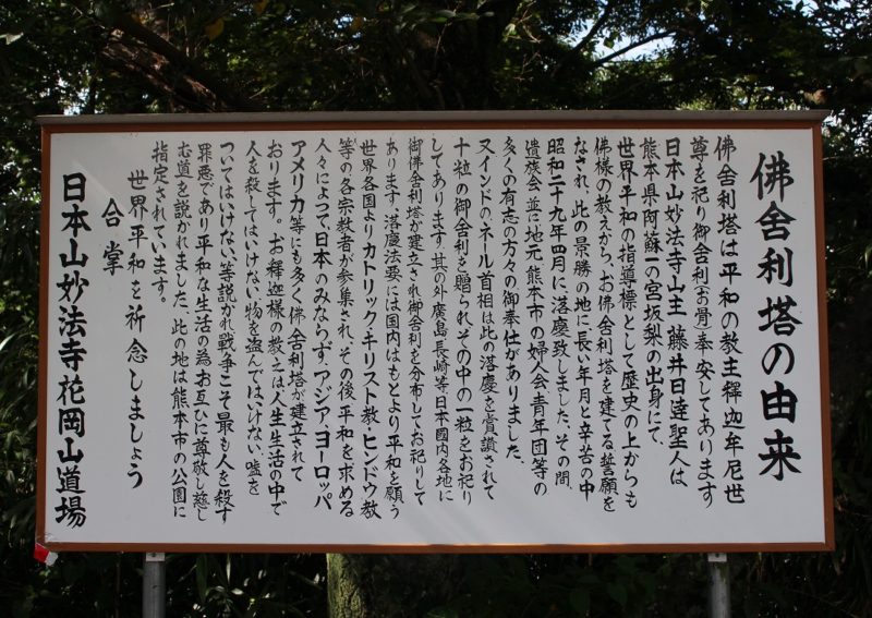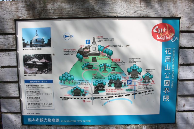さっそく、花岡山公園界隈の説明が書かれている掲示板を発見しました!仏舎利塔についても書かれています。これで今回の調査依頼もばっちりですね!!
