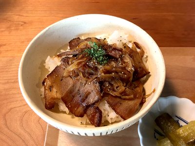 「ベーコンをただ焼いて出すだけでなく、様々な料理として活用できるというのを提案したい」ということで、今回は「ベーコン丼」として提供して頂きました。