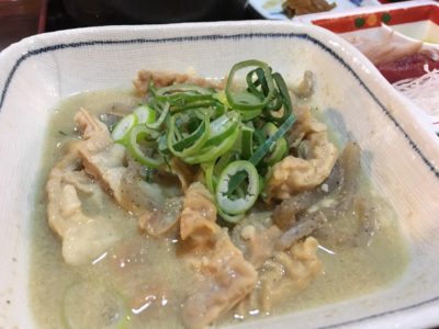 こちらがお刺身付ホルモン定食。お刺身が5切ついて780円と、こちらも破格の値段です。