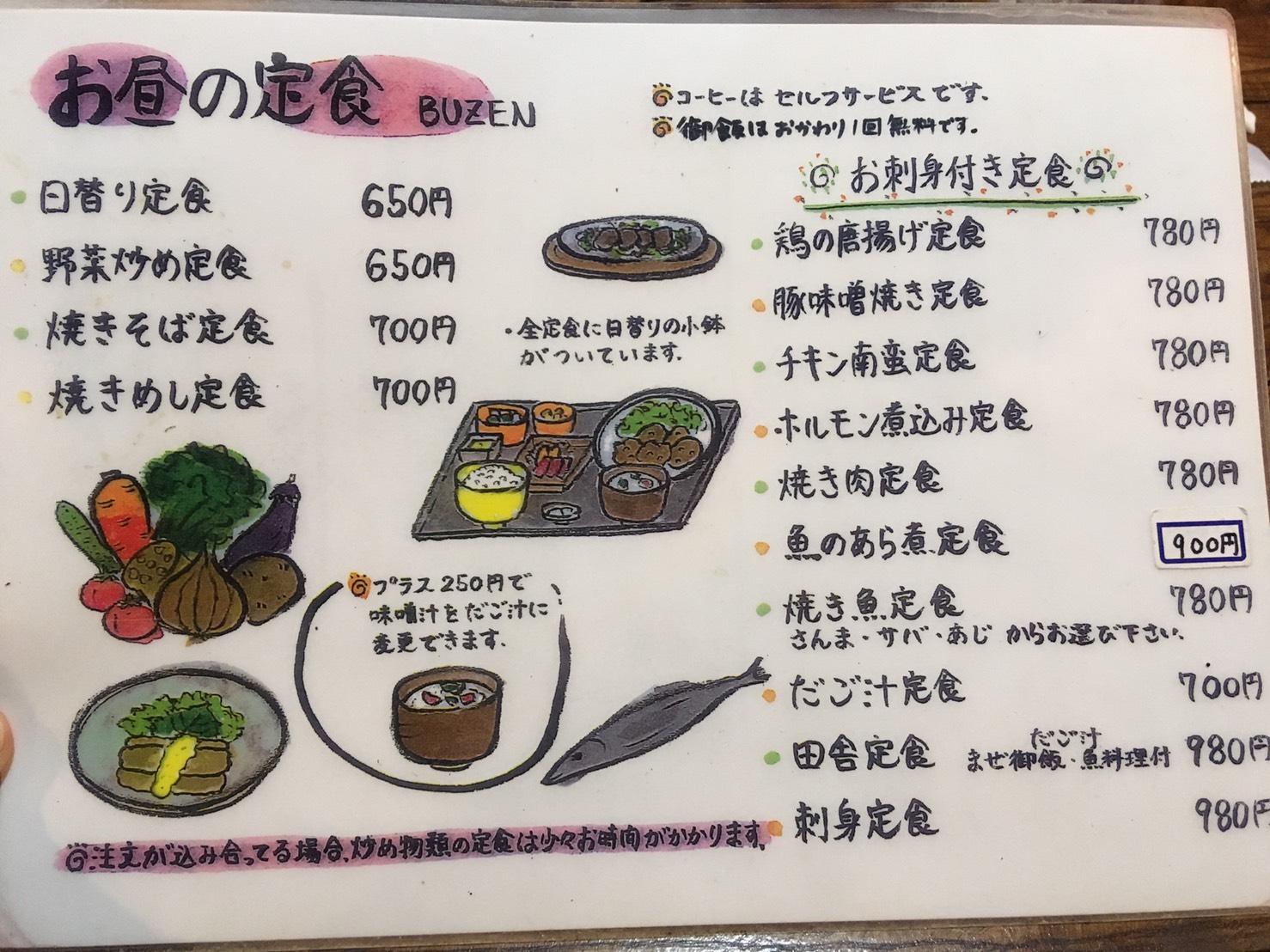 徳王町にある「居酒屋 武膳」で提供されているお昼の定食。おいしい!安い!早い!の三拍子がそろった、定食の見本のような素晴らしい内容でした!