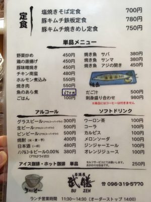 こちらが徳王町のテレビ熊本の近くにある「居酒屋 武膳」。居酒屋ではありますが、看板には…