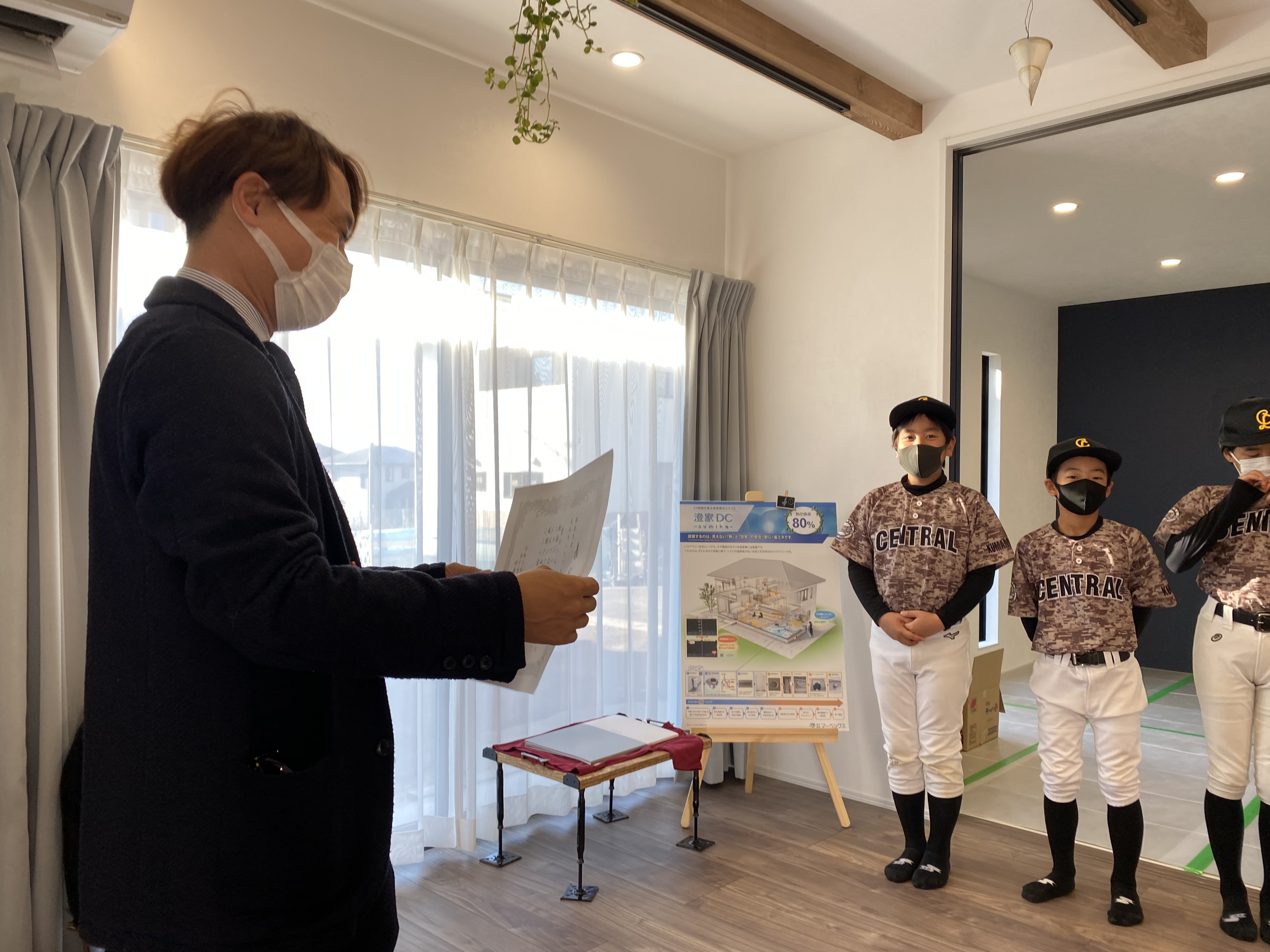 今回表彰式の授与式が行われたのは、BYMホームの完成見学会で使っている新築のおうち。