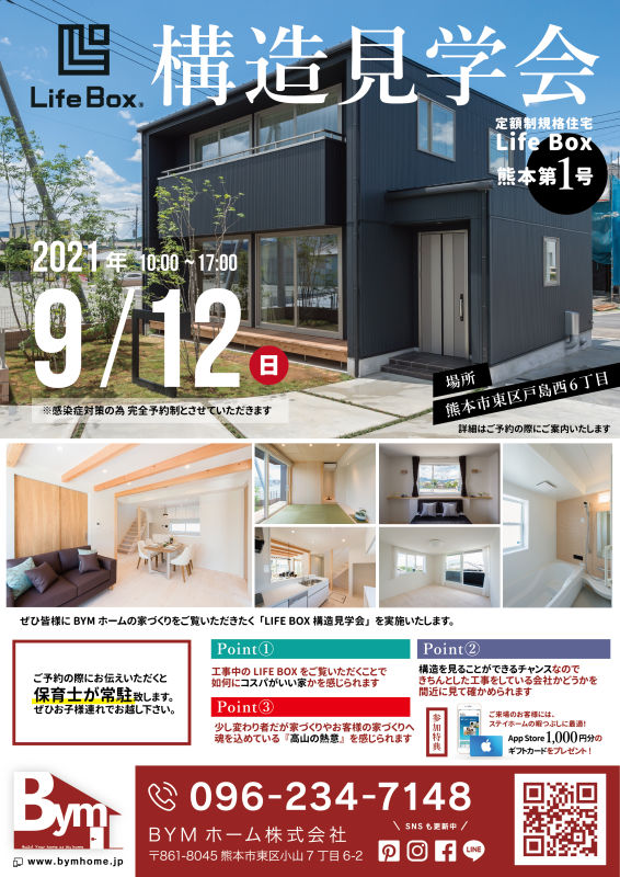 今回の贈呈式の場所となるBYMホーム施工の構造見学会が9月12日に開催されます。