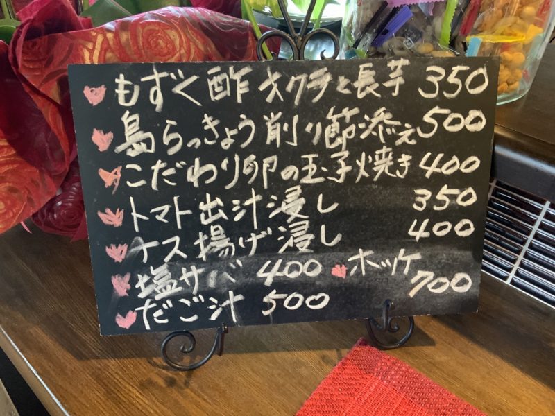 黒板メニューも、手作りの料理がずらり。日替わりで旬のものを中心に出しているそうで、どれも美味しそう。