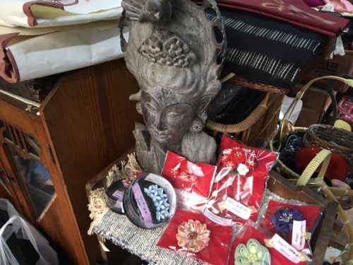 「あったあった!それらしい、かわいいハンドメイドの髪飾り…」と思ったら、その横には観音様の頭部…。