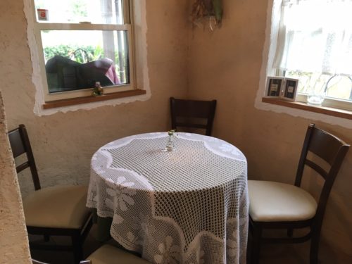 山口さんは、もともと17~18年前から「ハンドメイド 凛」のオーナーをされており、人がたくさん集まるので、熊本地震後に、お店の奥にこちらのカフェを作られたそうです。ちなみに、リメイクのお店「ハンドメイド 凛」にある骨董品は、売り物とコレクションがあるとのこと。