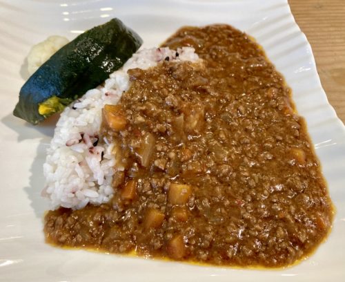 次にきたのはキーマカレー!フレッシュなトマトがたくさん入っていて元気沸き出る味でした。大きいかぼちゃもほっくほくでウマでしたよ。