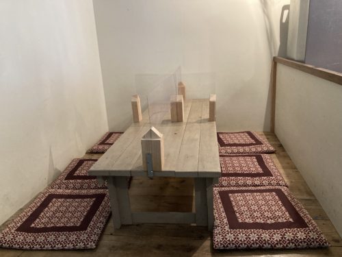 カウンターだけでなく、2人がけの席やこのように6人がけの席までありましたよ。